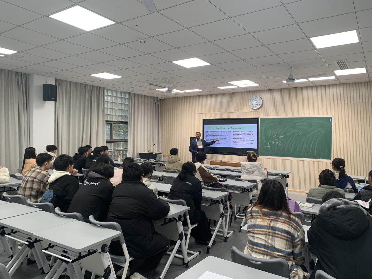 12月6日上午,经济管理学院邀请外教Hazem Ahmed Ragab Ali博士在春晗楼304为师生开展了一场题为“职场中的Z世代:见解和建议”的英文主题讲座。