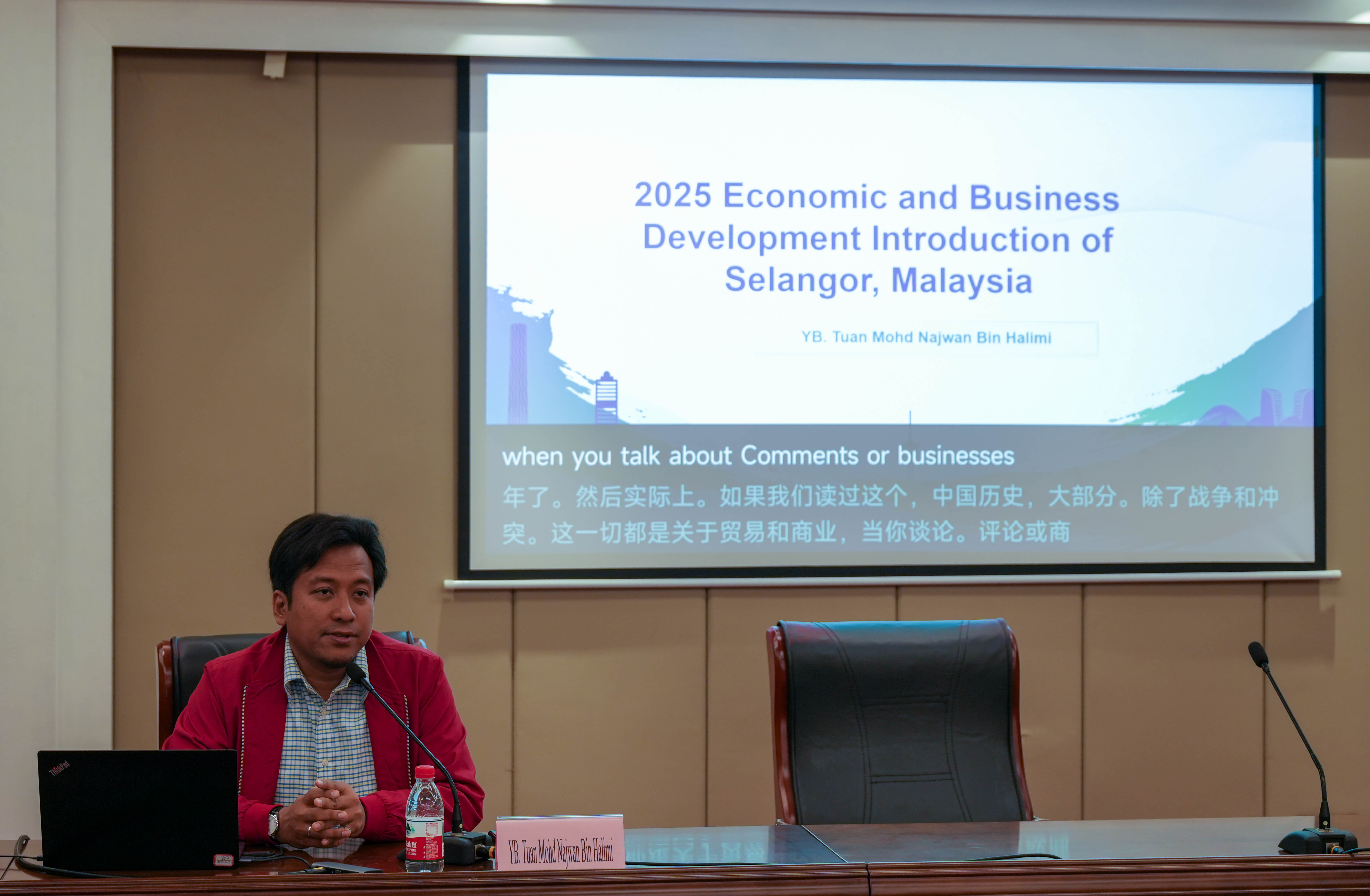会议由经济管理学院负责人主持。他在致辞中指出,义乌作为“世界小商品之都”,与马来西亚经济核心区雪兰莪州长期以来经贸往来密切。随着“一带一路”合作走深走实,两地人文互动与教育合作日益深化。马来西亚义乌丝路学院作为中马职业教育合作的重要平台,致力于推动两国青年技能提升与创新创业能力建设,为区域协同发展注入新动力。