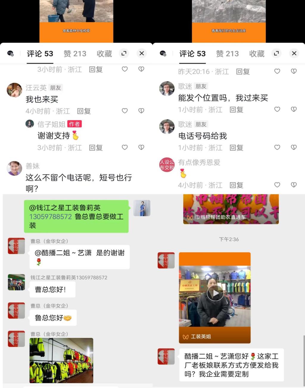 在衢州,师生教练对来料加工经纪人展开了全面剖析,一对一指导,助力他们提升数字营销技能,积极转型升级。其中学员“常山鸡妈妈”发布的短视频24小时内,浏览量就超1.8万,吸引40多个客户购买山鸡;开化学员“工装英姐”发布短视频才10分钟,就吸引到有需求的客户,成功对接企业订单。