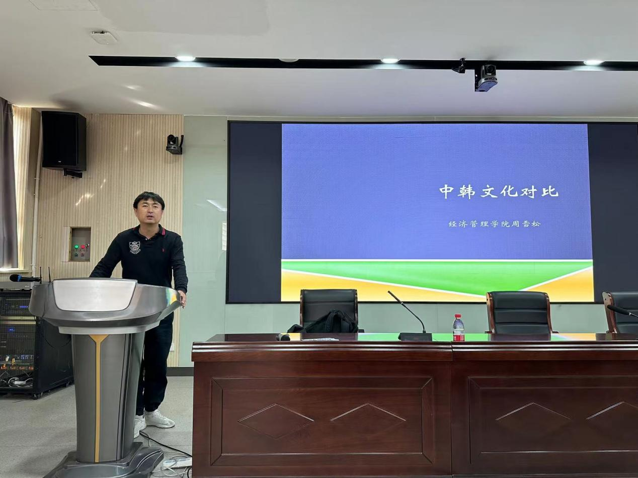 10月17日上午,经济管理学院开展“浅谈韩国文化与教育”专业讲座,重点介绍韩国文化与教育的基本情况,分析中韩文化的差异。讲座由学院专任教师周雪松博士主讲。