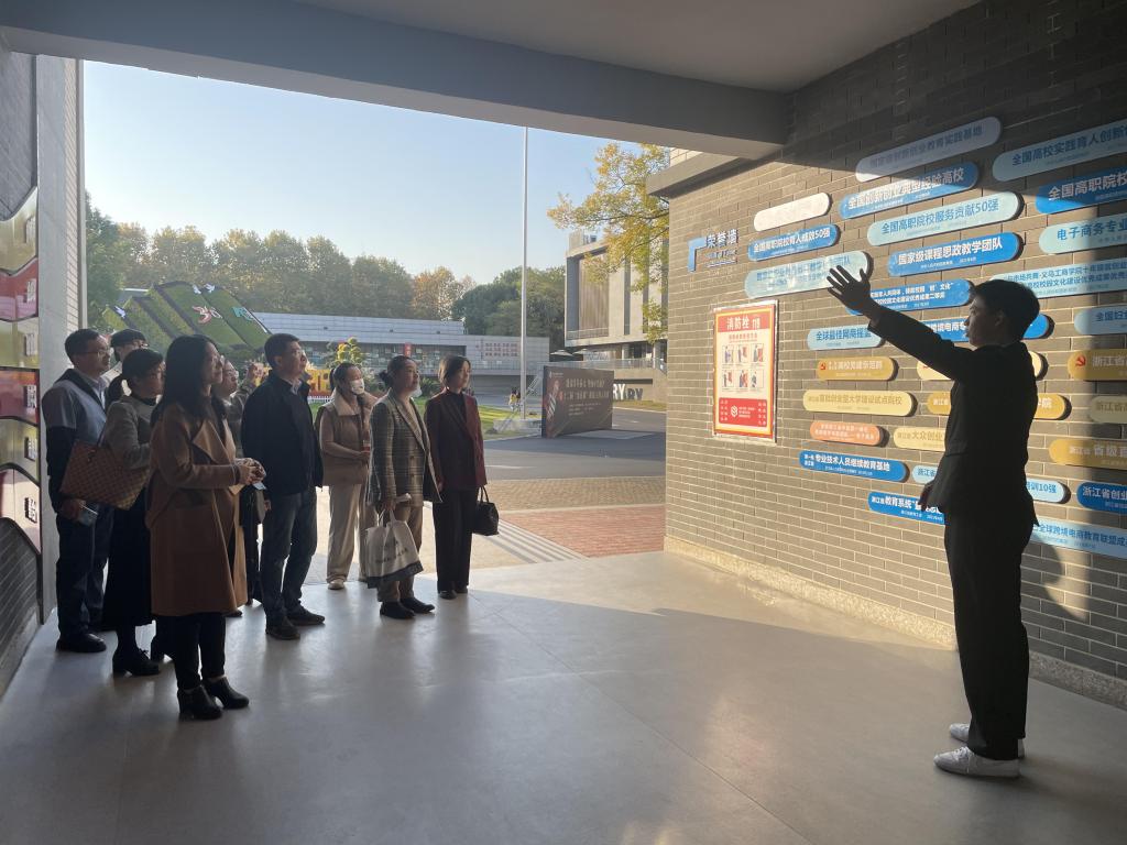 会后,浙江师范大学行知学院商学院院长麻勇爱一行在经济管理学院负责人的陪同下参观考察了数字贸易实训基地、创意园等地。