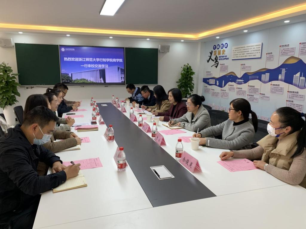 会上,经济管理学院教学负责人对浙江师范大学行知学院的到来表示热烈欢迎,并详细介绍了学院在办学特色、教学科研、人才培养、专业建设等方面的做法和成效。双方就相关专业人才培养、产教融合、实训基地建设等方面的具体做法和经验展开了深入交流和探讨。