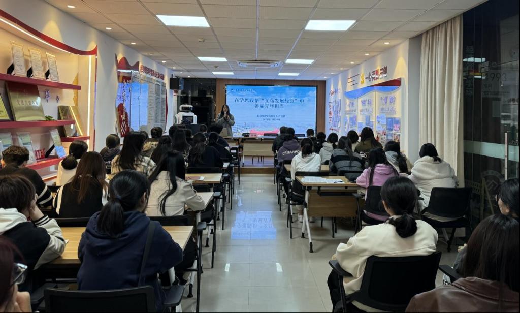 经济管理学院党委书记为学员们作《在学思践悟“义乌发展经验”中彰显青年担当》微党课,分别从“如何在义乌发展经验中强自信”“如何在总书记殷殷嘱托中立大志”“如何在职业教育强国新征程上提技能”,阐述了新时代背景下青年应当如何面对时代考题。她对全体学员提出三点要求,一是要在深刻理解义乌发展经验中,秉承“尚德崇文、创业立身”的校训,扛起青春担当;二是要在主动践行义乌发展经验中,坚持守正创新、薪火相传,诠释好青春的奋斗力量;三是要在勇敢面向未来上圆梦青春誓言,仰望星空不忘初心、脚踏实地勇毅前行。