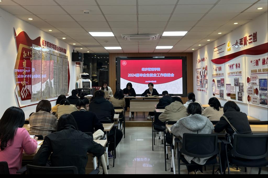 为进一步提高认识、统一思想,抢抓就业“黄金攻坚期”,4月8日下午,经济管理学院在学院会议室召开2024届毕业生就业工作推进会,学院党委负责人、学工办主任、就业辅导员和全体2024届班主任参加会议。