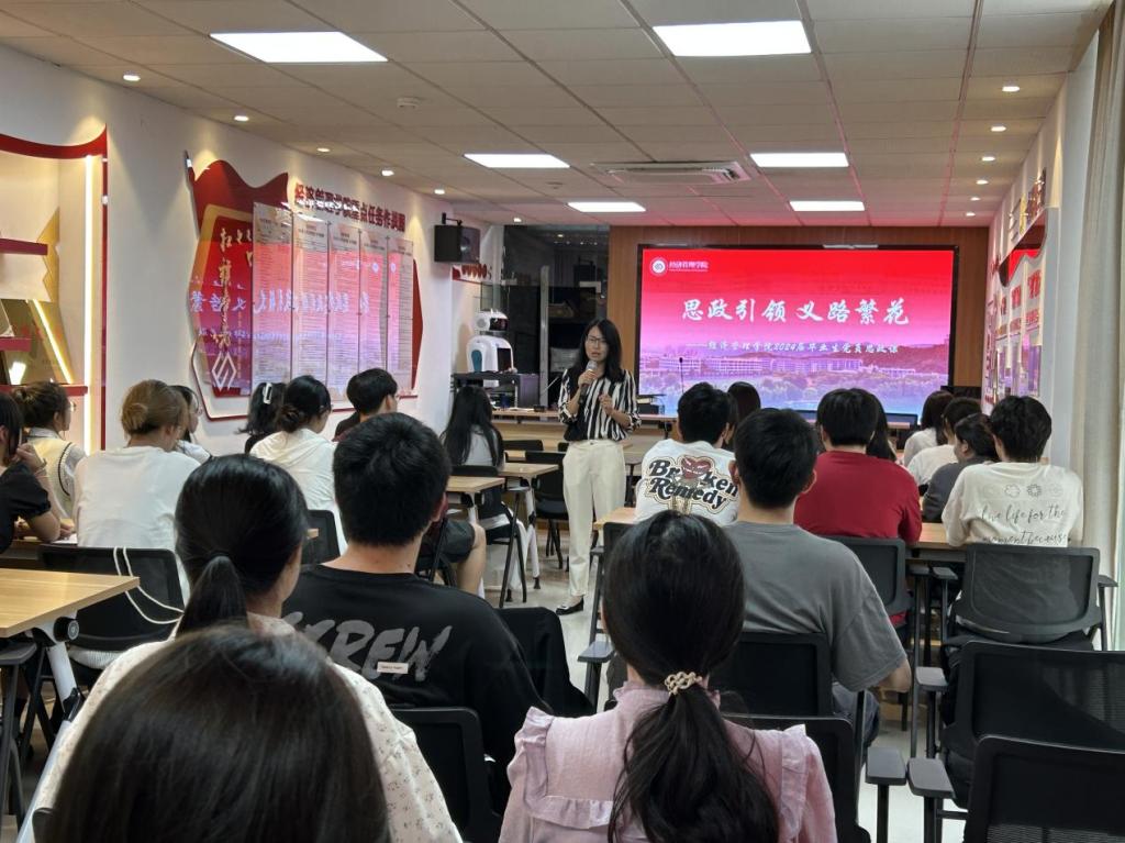 为进一步提升思政课铸魂育人实效,努力培养担当民族复兴大任的时代新人,6月14日下午,经济管理学院党委负责人吴媛以《思想引领 “义”路繁花》为题,在学院会议室讲授思政课。全体学生党员共同聆听。