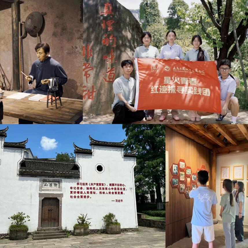 近日,义乌工商职业技术学院经济管理学院的“星火青春 红迹探寻”暑期社会实践团创新载体,沿着“真理号”轻轨线路,融合理论学习、专业实践与文化传播,深入探访官塘、陈望道故居、施光南故居等地的红色印迹,并通过“演、说、看、听、谈”等形式,探寻“真理的味道”,从红色文化中汲取文化自信的力量,让青春在实践中熠熠生辉。