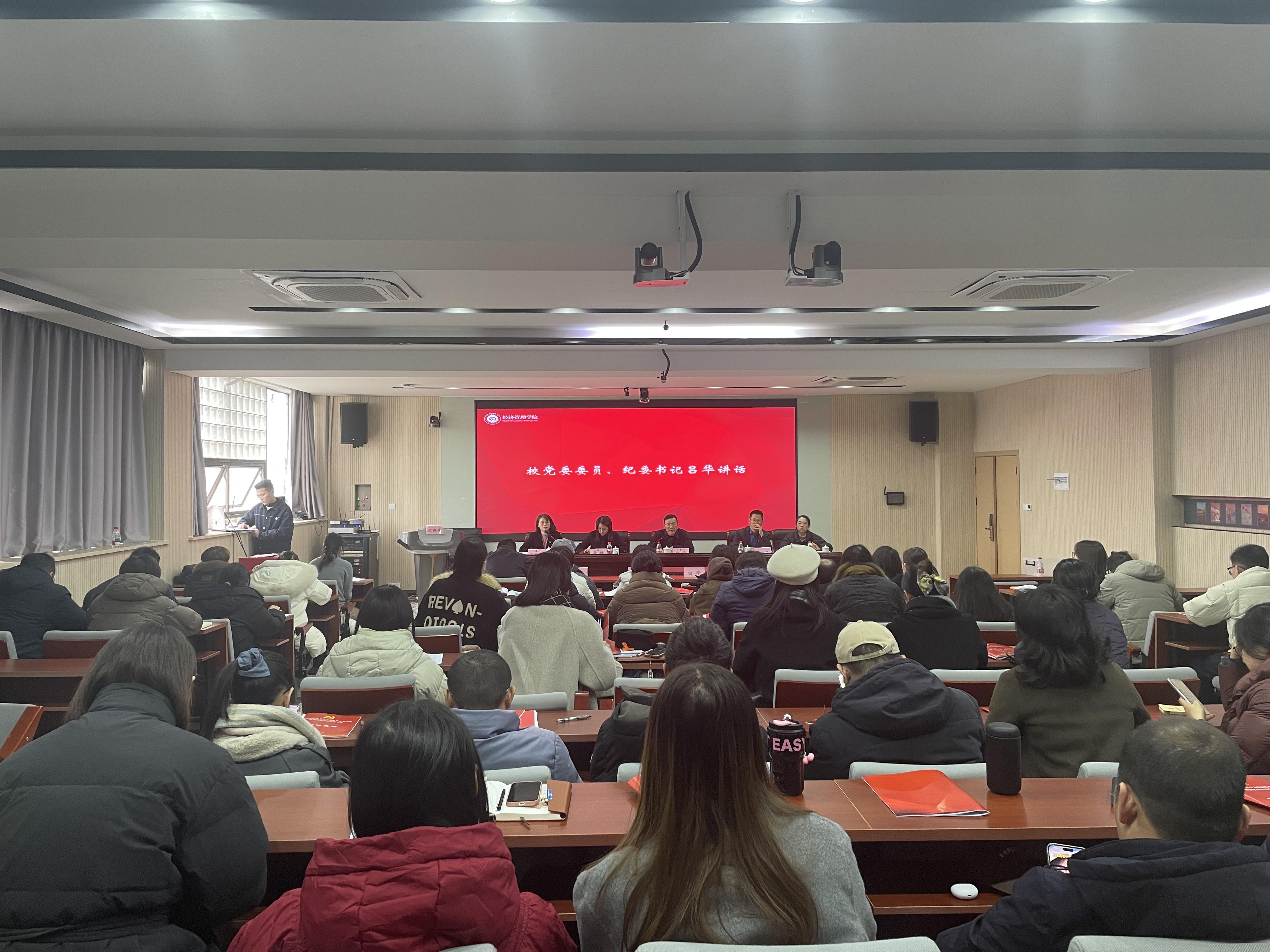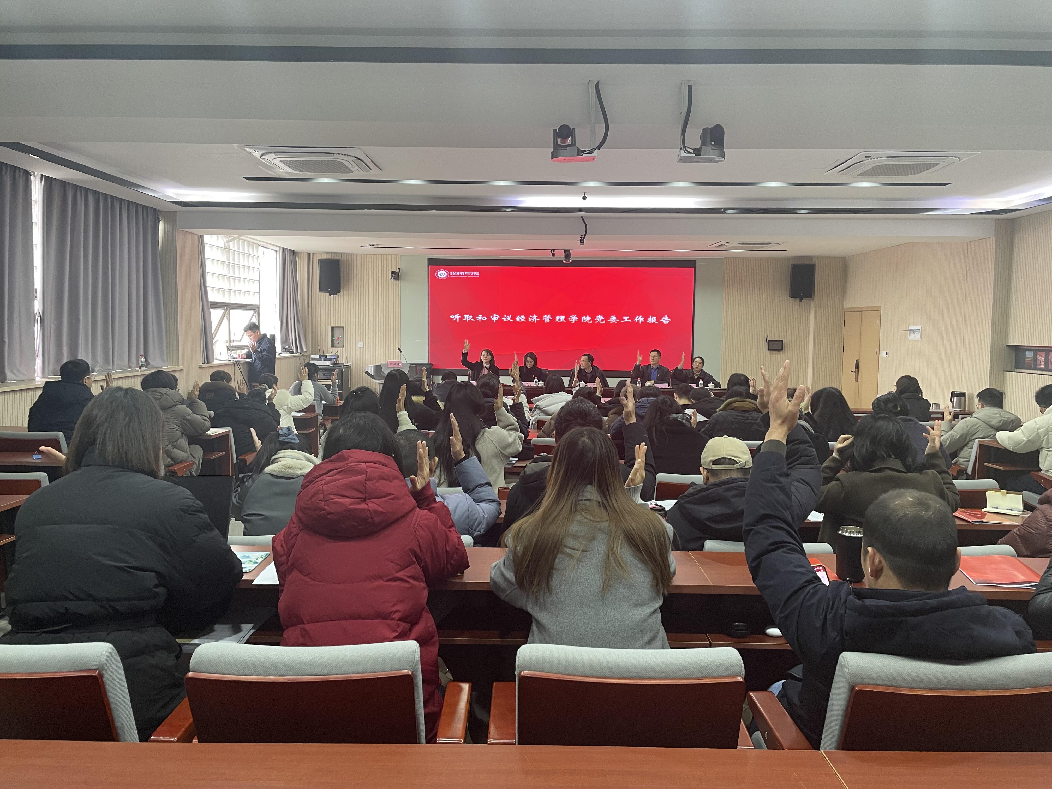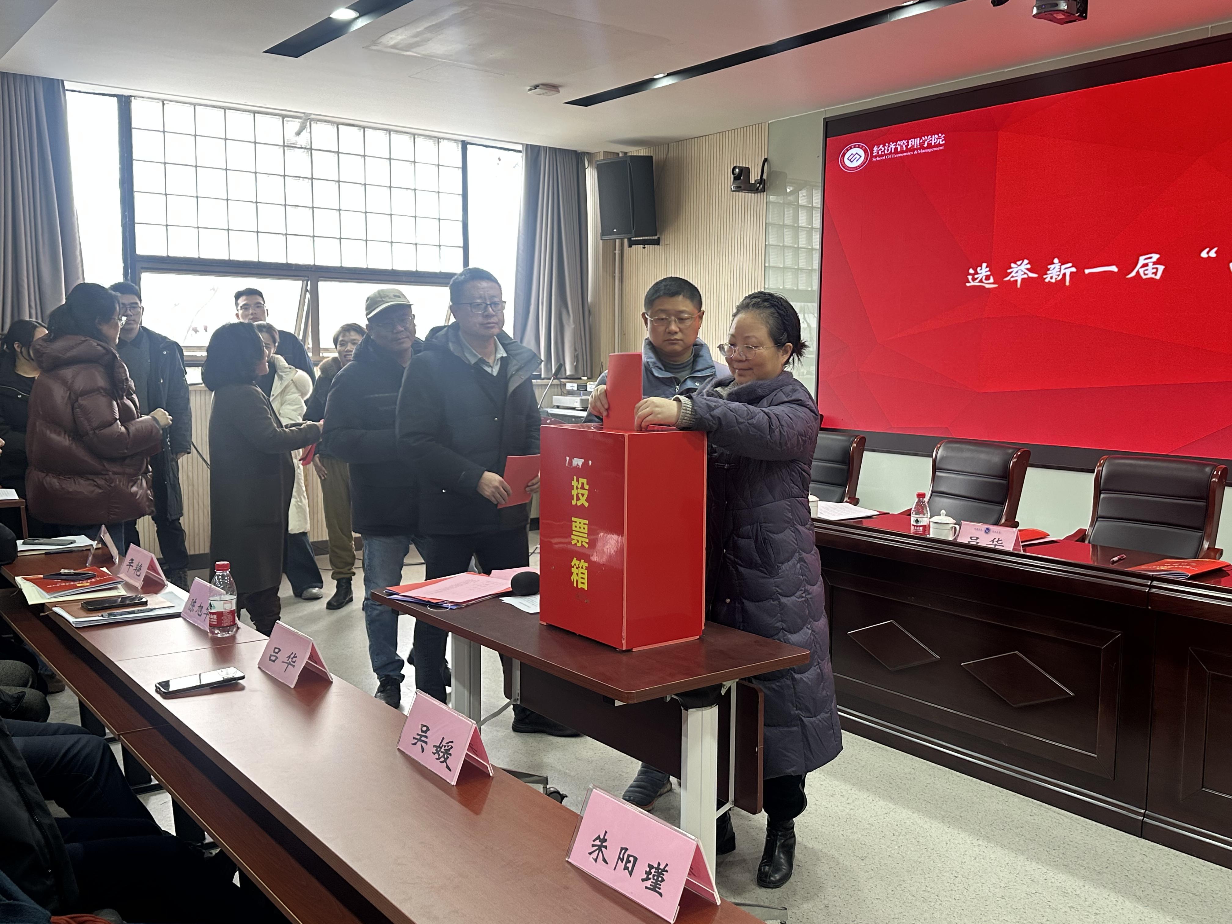 1月28日下午,经济管理学院党委换届选举大会在望道楼419召开。校党委委员、纪委书记吕华到会指导。学院领导班子及全体党员参会,会议由学院党委副书记主持。