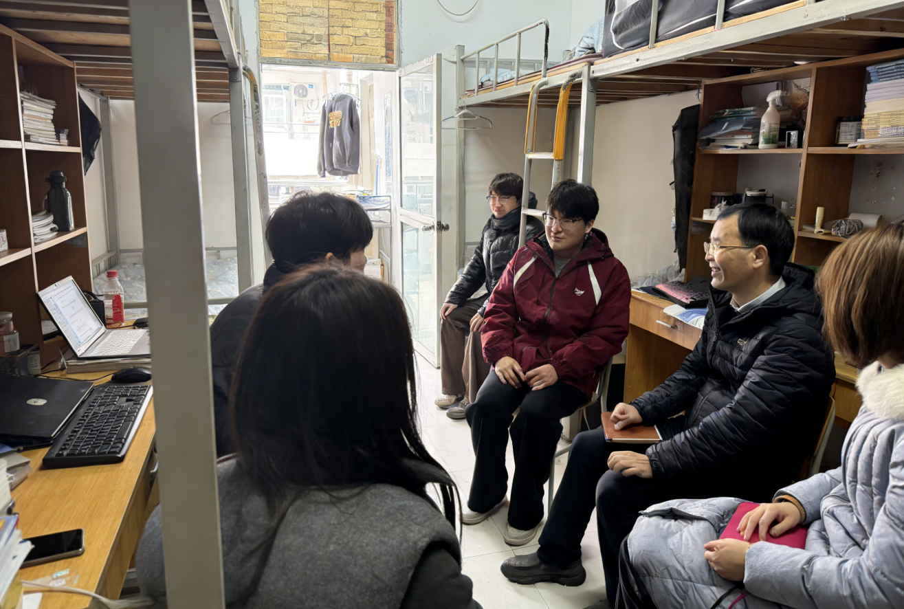 会后,吕华率队开展一线随机走访,现场观摩《企业运营沙盘》课程授课情况,实地走访“三联系”学生寝室,看望慰问贫困生,并与师生开展面对面深度交流,传递组织温暖,关心学生成长。