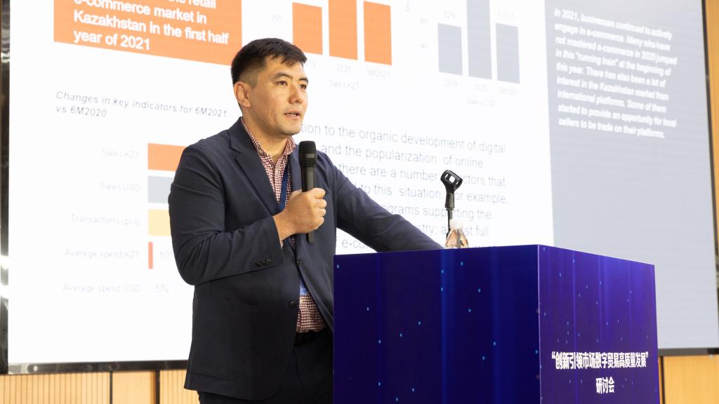 随后,哈萨克斯坦专家Doszhan Baibokonov博士发表了题为“Cultivating National Capacities for Digital Economy Development: Case of Kazakhstan(激发国家数字经济发展潜能——以哈萨克斯坦为例)”的主旨演讲。他指出,电商的发展基于平台本身、金融科技以及物流的支持,其成功发展还需要做到与竞争对手形成差异化竞争、了解和覆盖从付款到运输全流程、关注客户满意度等。