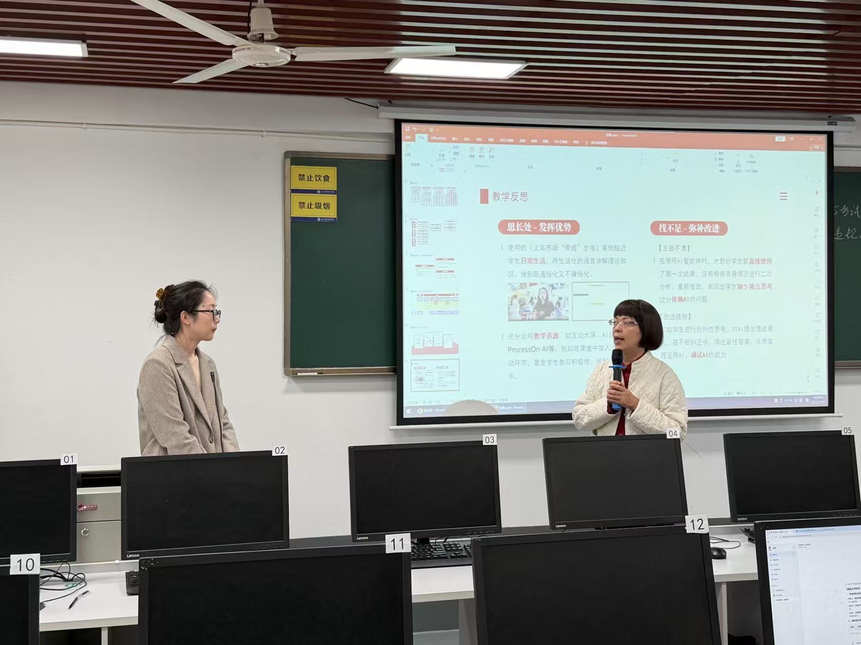 课后,金思琪围绕教学内容、教学目标、教学设计、教学反思等内容进行说课。教学督导在点评中指出,本节公开课呈现“案例新、互动实、启发深”的鲜明特点,既展现了经管类课程“知行合一”的魅力,又通过在线实时互动体现了信息化教学优势,为新商科课程改革提供了可借鉴的实践范例。观摩教师也围绕“案例拓展方向”“工具教学梯度”等问题展开深入研讨。