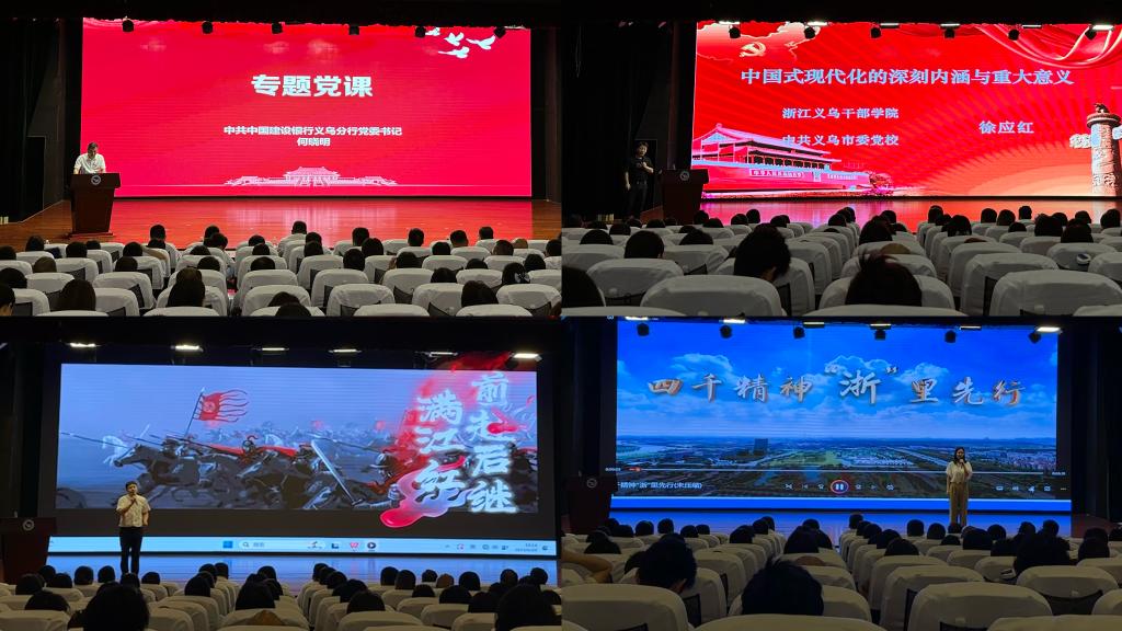 经济管理学院党员教师刘展、马克思主义学院党员教师陈哲分别作题为《三唱满江红,赓续华夏情》和《四千精神,“浙”里先行》的微党课。