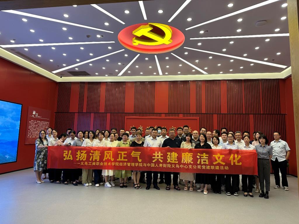 为加强清廉文化建设,营造崇尚廉洁的社会风气,5月28日,义乌工商职业技术学院经济管理学院与中国人寿财产保险股份有限公司义乌中心支公司携手开展以“弘扬清风正气,共建廉洁文化”为主题的系列党建联建活动。