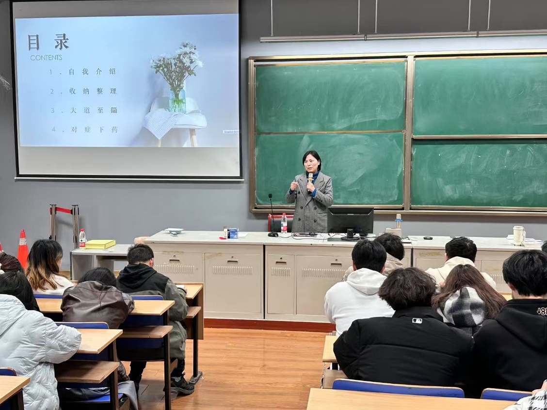 近日,经济管理学院在长廊阶梯教室举办寝室整理收纳讲座。义乌市金翼文化国学部负责人、“大道至简”整理收纳法主理人张玉梅老师受邀主讲,全院寝室长参与学习。