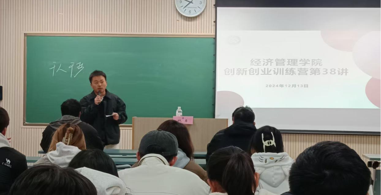 12月13日,经济管理学院第38期创新创业训练营邀请了2020届工商企业管理专业优秀校友魏勇主讲。他以其丰富的创业经历和敏锐的市场洞察,为在场的学子带来了一场别开生面,生动有趣的创业分享会。