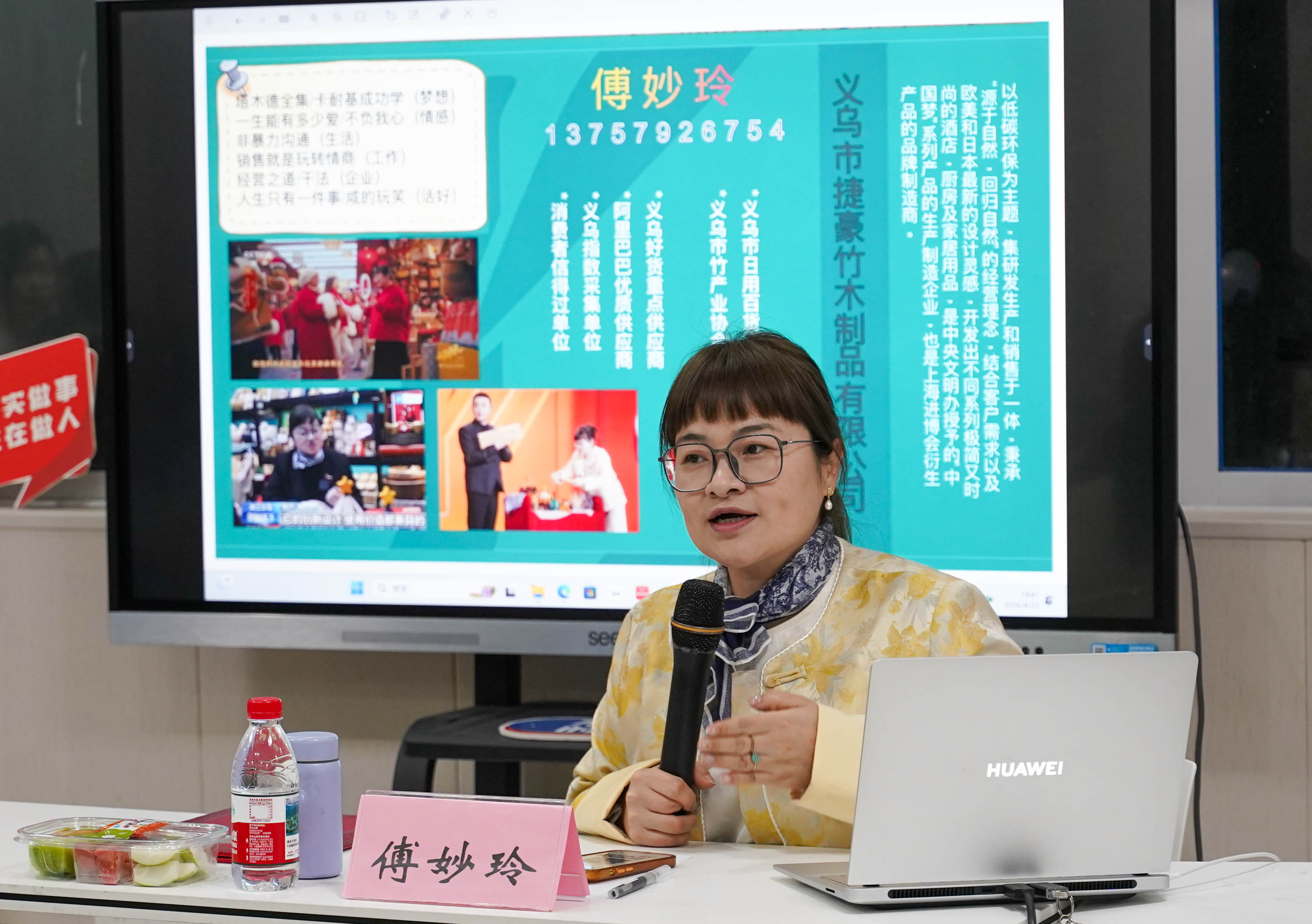 活动开始前,傅妙玲与参会学生一起观看了中央电视台新闻联播节目播出的习近平总书记关于进一步总结运用好“义乌发展经验”的重要指示。傅妙玲正是“义乌发展经验”提出20年来推广运用的亲身践行者与受益者。